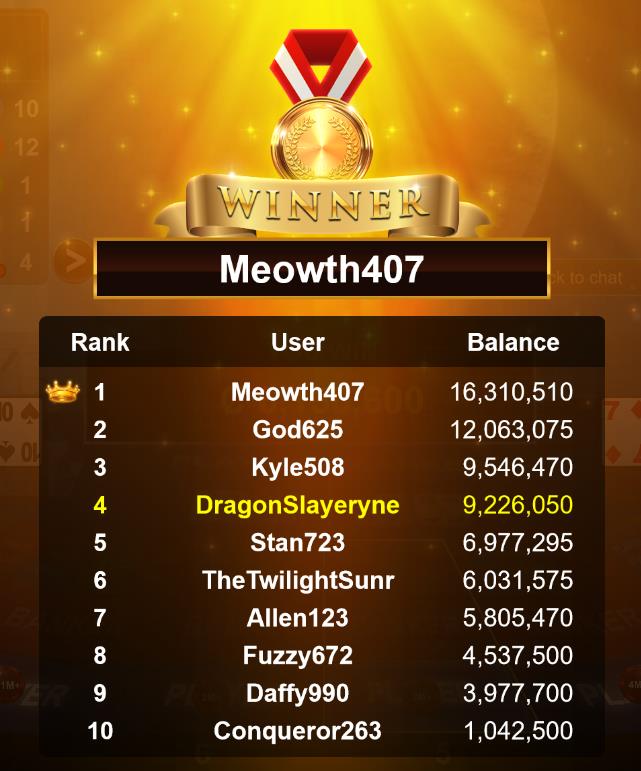 Congratulations banana881gs1 Tournament Victory!
