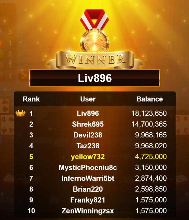 Congratulations banana881gs1 Tournament Victory!