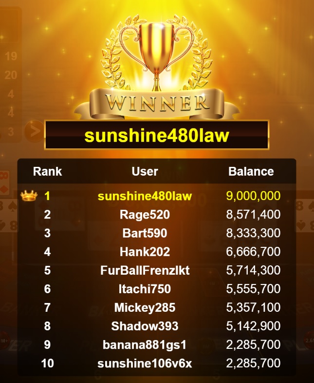 Congratulations banana881gs1 Tournament Victory!