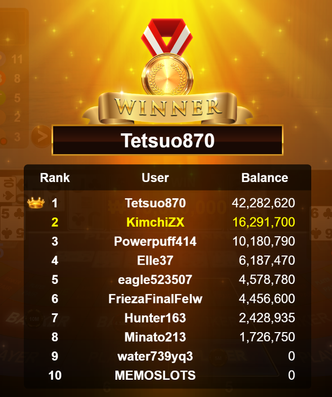 Congratulations banana881gs1 Tournament Victory!