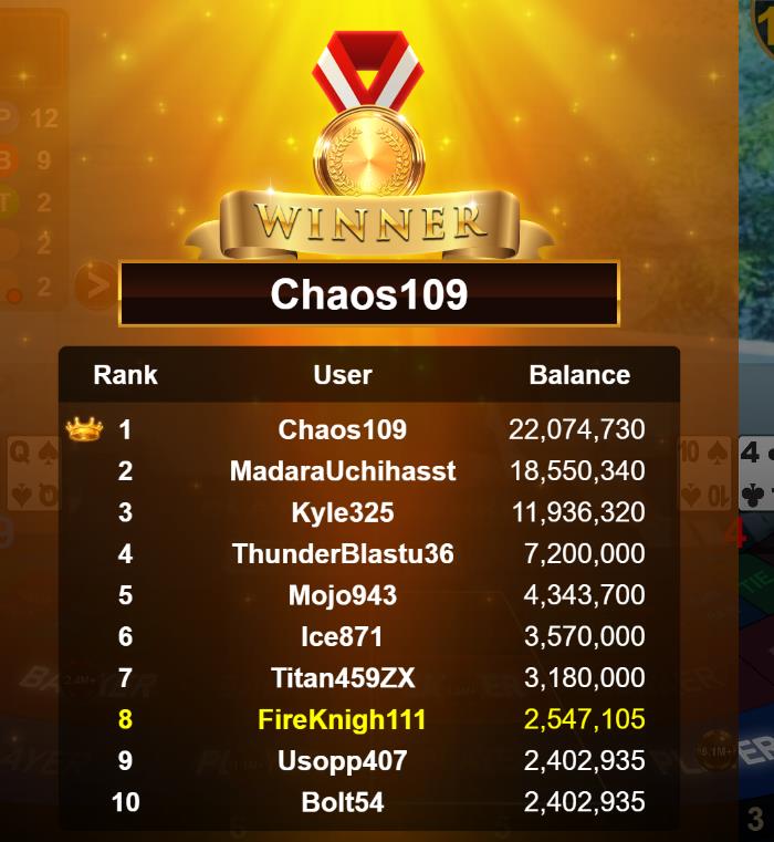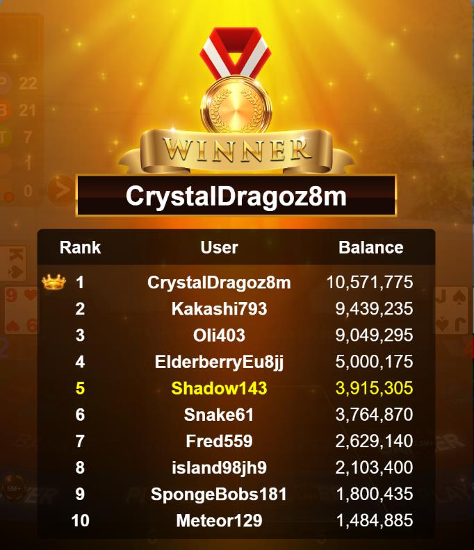 Congratulations banana881gs1 Tournament Victory!