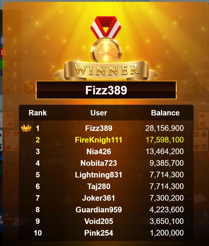 Congratulations Fizz389 Tournament Victory!