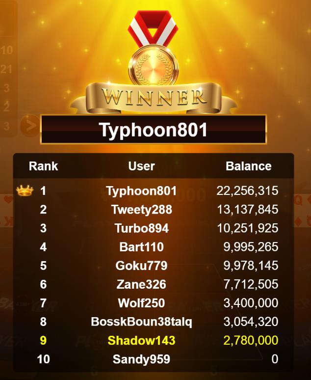 Congratulations ocean13404a Tournament Victory!