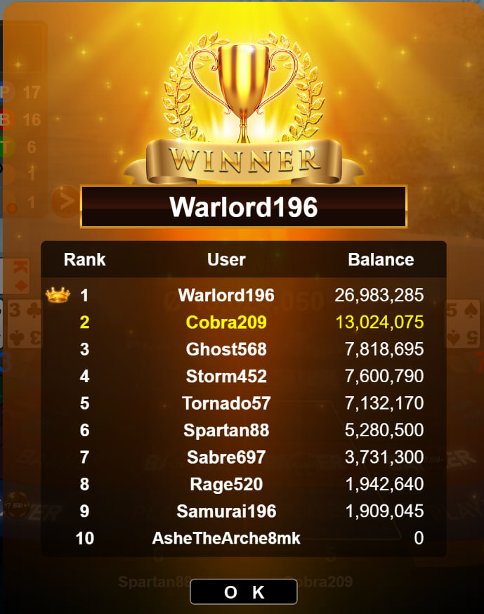 Congratulations ocean13404a Tournament Victory!