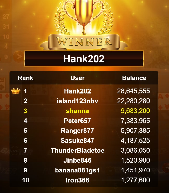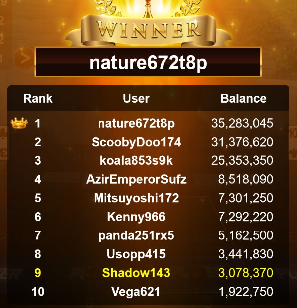 Congratulations banana881gs1 Tournament Victory!