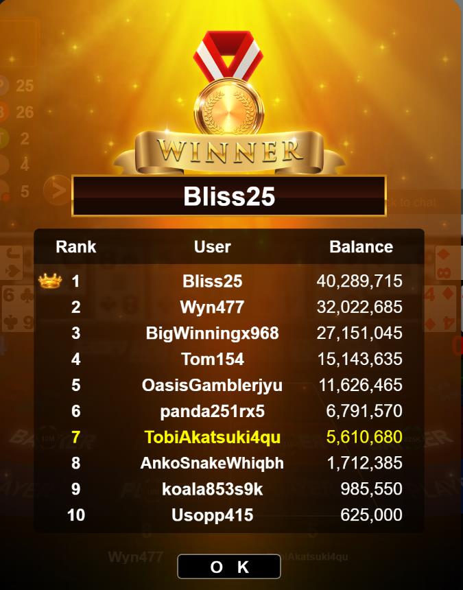 Congratulations banana881gs1 Tournament Victory!