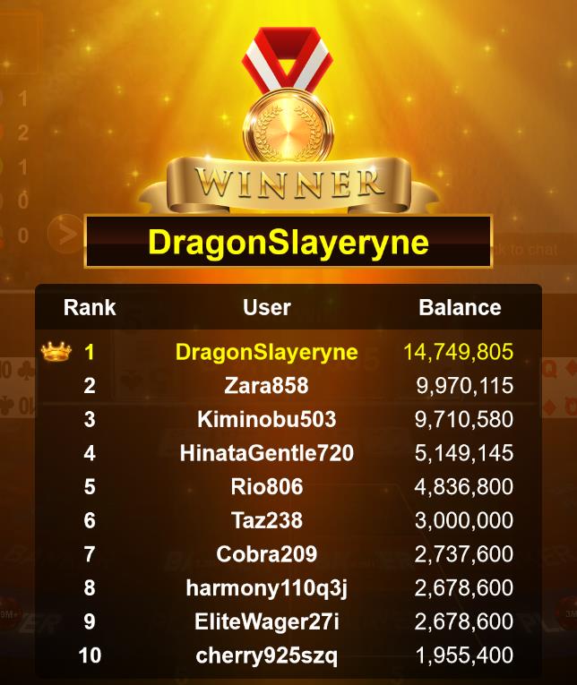 Congratulations Jinbe83 Tournament Victory!