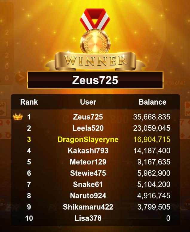 Congratulations ocean13404a Tournament Victory!