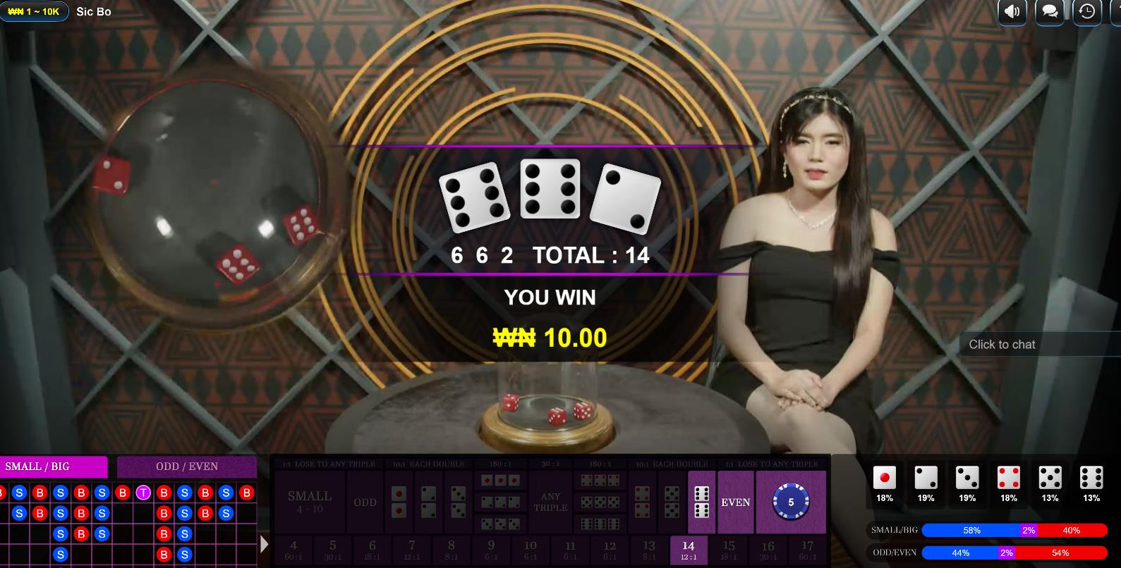 Roll the dice and let luck decide your fate in this exciting game of Sic Bo!