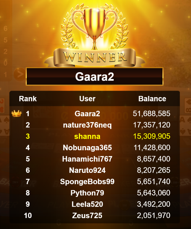 Congratulations banana881gs1 Tournament Victory!
