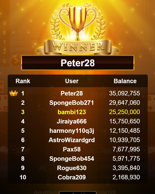 Congratulations ocean13404a Tournament Victory!
