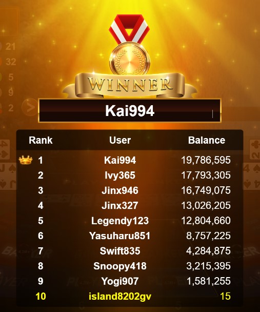 Congratulations banana881gs1 Tournament Victory! 3,000