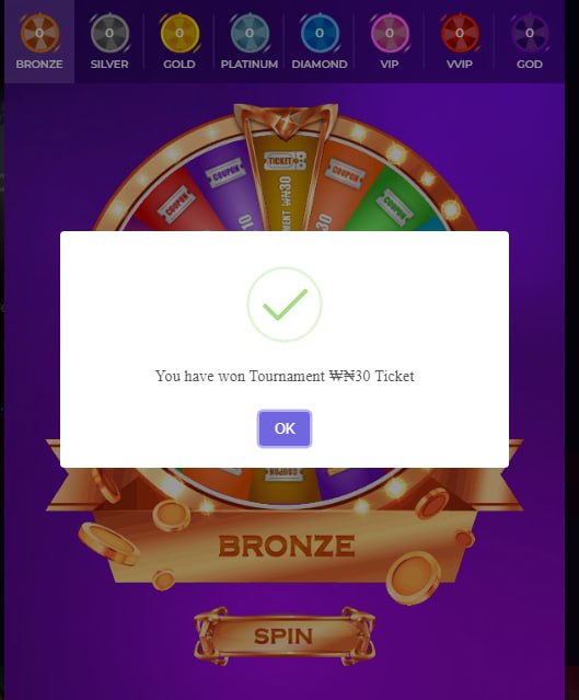 I was lucky enough to activate a free spin bonus, which increased the level of games. I held my breath as the imaginary wheel rotated. I was shocked when the wheel fell on the ₩N30 tournament ticket, enabling me to achieve the tournament's desired first rank!