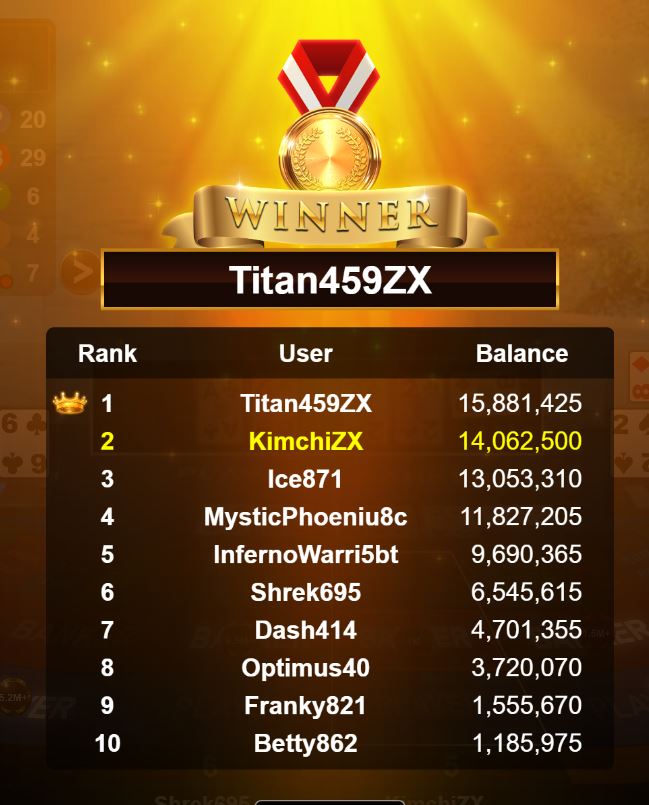 Congratulations banana881gs1 Tournament Victory!