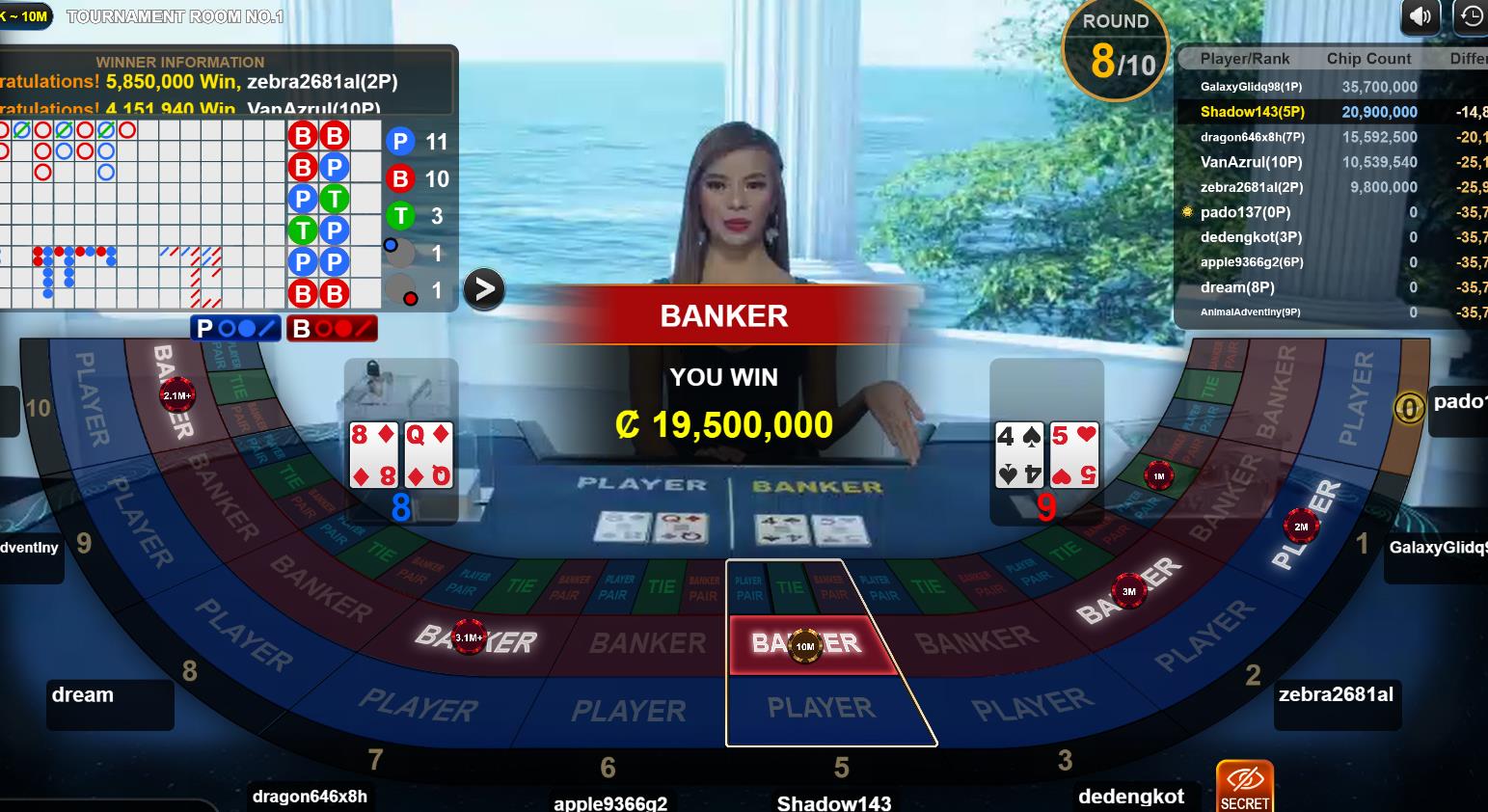 I can't make it to the second round my heart is so happy because I get a chance to play free in Baccarat tournament