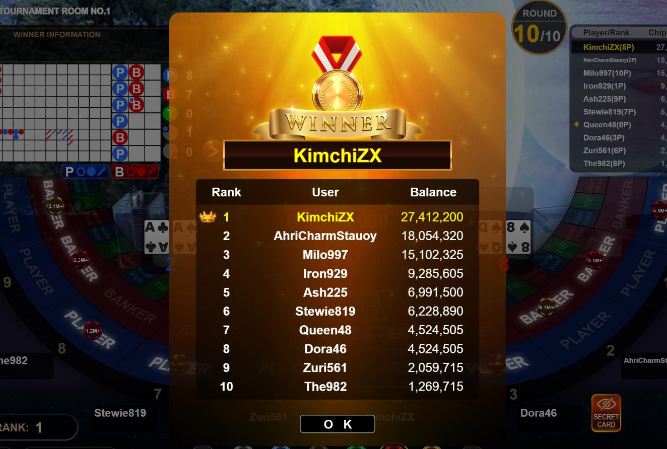 The Banker smiles in both Baccarat 1 and tournament woohh! I broke the curse hahaha