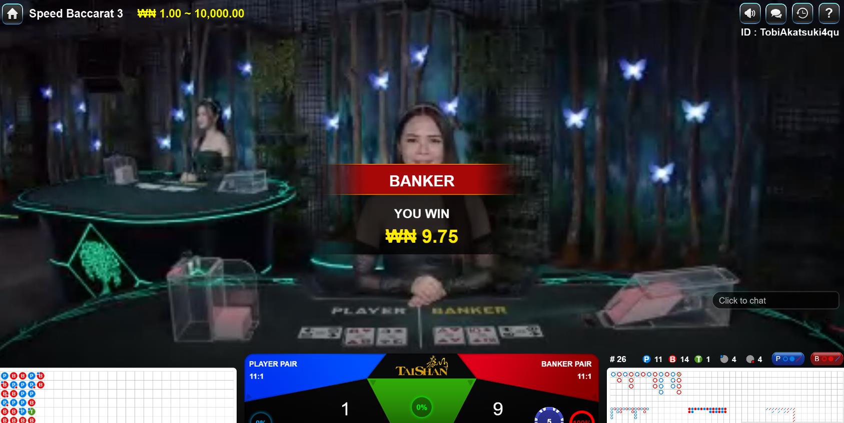 I emerged victorious at Speed Baccarat 3!