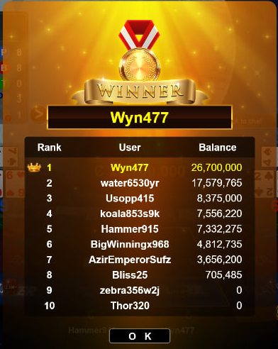 Hi! there your victory in the Baccarat tournament is a testament to your dedication and skill Whoaaa~~ you obviously have a talent for knowing when to make the proper decisions. Congratulations!!