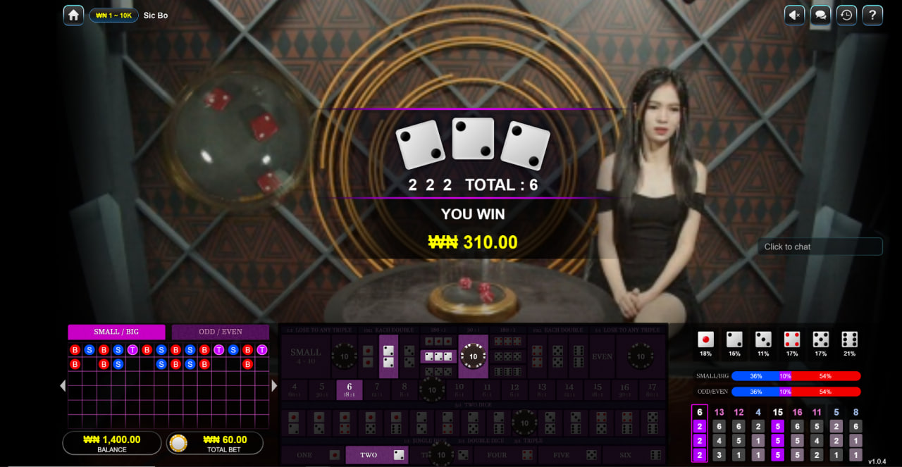 At Wannas Casino, I had $60 and decided to play Sic Bo. Surprisingly, I got lucky, and my $60 turned into a big $310! I was so happy and amazed that I wanted to play again.