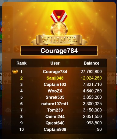 Even though the last fight was a fierce struggle, I remained calm. The final hand came up with a winning combination in a suspenseful finale, and as the virtual cards showed. And I'm going to say that it's not that bad because I still won the second place!!