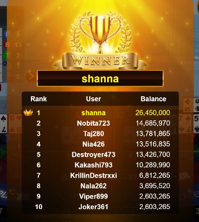 Congratulations banana881gs1 Tournament Victory!