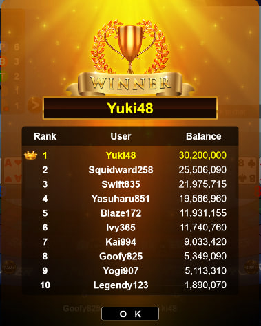 5Wow! Congrats! Betting it all on a tie and winning in the 8th round is quite the thrilling twist.Yuki48 wrote: Tue Nov 14, 2023 8:00 am I can't believe this, I thought iLL be losing in 8th rounds, That's why i BET all in TIE then luckily i WIN hahaha. And also I got a first rankI think today is my lucky day
